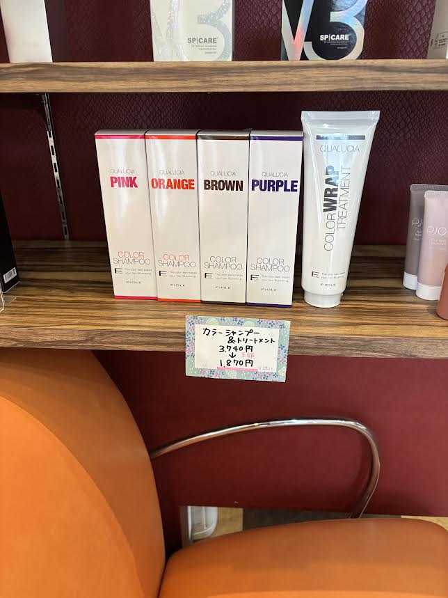 カラーシャンプーは「ピンク」「オレンジ」「パープル」「ブラウン」の4色で、トリートメントは共通となっております。